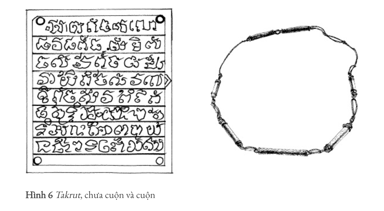Từ "Takrut" có nguồn gốc từ tiếng Thái, và nó chỉ một cuộn giấy hoặc ống. Takrut thường được tạo ra bằng cách khắc các biểu tượng thiêng, lời cầu nguyện, hoặc thần chú lên một dải nhỏ kim loại, da động vật hoặc vật liệu khác. Các dòng chữ thường được viết bằng các ký tự cổ, như Pali hoặc Khmer, và chúng được tin rằng mang theo năng lượng tâm linh hoặc phép thuật. Vật liệu dùng để làm Takrut rất đa dạng tùy thuộc vào truyền thống và mục đích sử dụng dự kiến. Những vật liệu thông thường gồm có đồng, đồng thau, bạc, vàng, chì, hoặc thậm chí là những chất hiếm hơn như kim loại thiêng hoặc thủy ngân. Một số Takrut còn chứa các chất thảo dược hoặc khoáng chất, tro từ nhang, hoặc các thành phần thiêng khác.